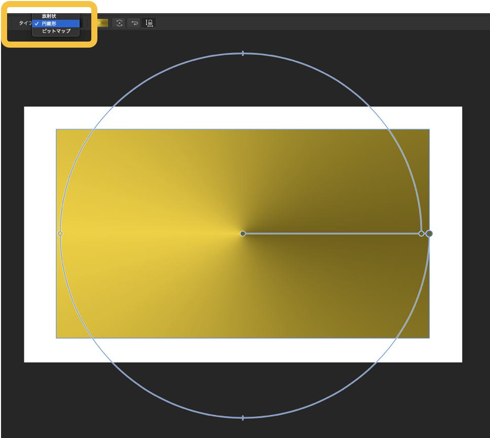 ”Although it is cut off, you can change the shape of the gradient by selecting "Type" in the upper left (solid, linear, oval, radial, conical, bitmap).”
