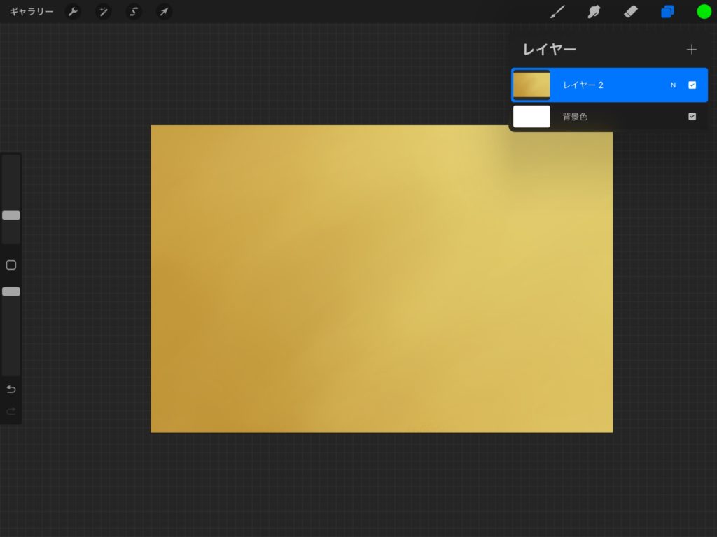 ①まずはレイヤーを作成し、そのレイヤーに画像や塗り潰し、グラデーションで金色にします。