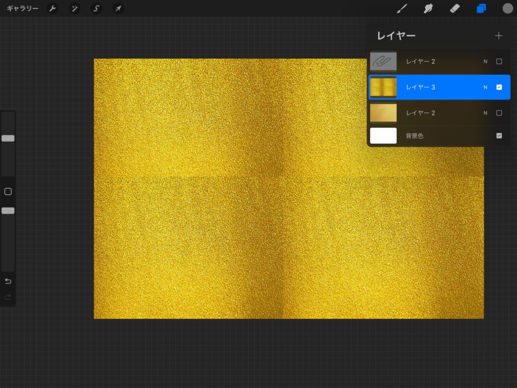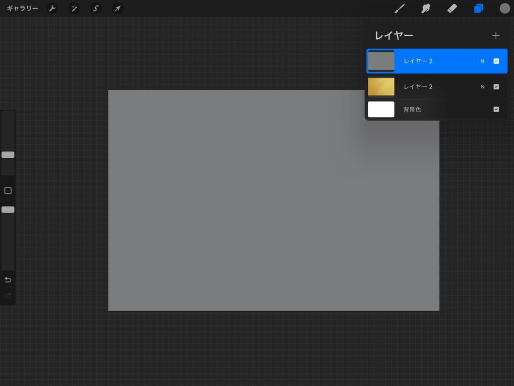 ②金色レイヤーの上に、新規レイヤーを作成します。色は何色でも(白でも)良いです。画像はわかりやすいようにグレーにしています。